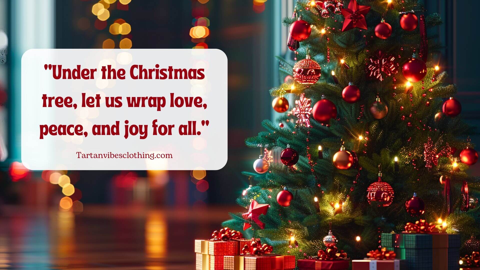 2. "Under the Christmas tree, let us wrap love, peace, and joy for all."