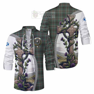 Craig Tartan Women's Casual Shirt with Family Crest and St. Andrew's Cross Accented by Thistle Vines
