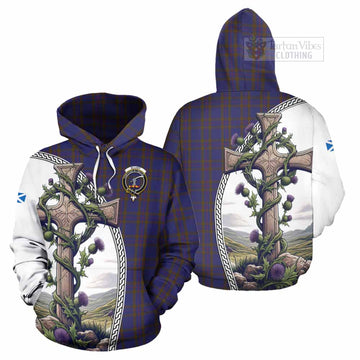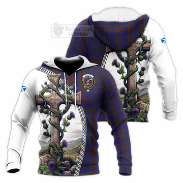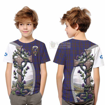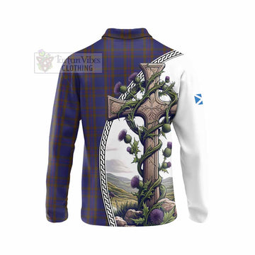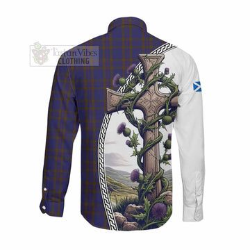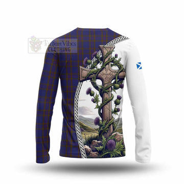 Elliot Tartan Long Sleeve T-Shirt with Family Crest and St. Andrew's Cross Accented by Thistle Vines