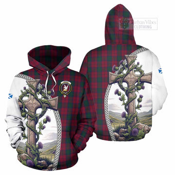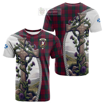 Lindsay Tartan Ghillie Kilt Shirt with Family Crest and St. Andrew's Cross Accented by Thistle Vines