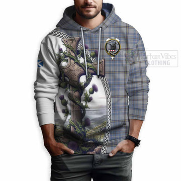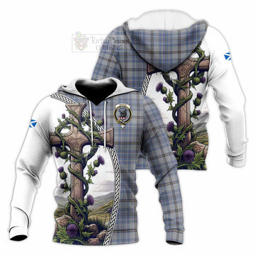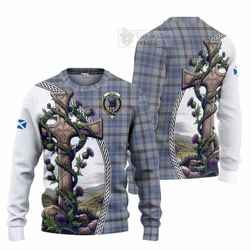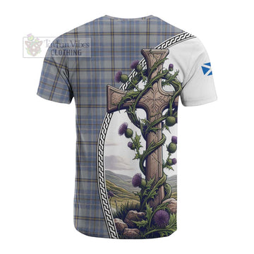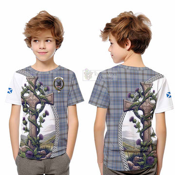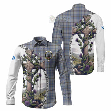 Tweedie Tartan Ghillie Kilt Shirt with Family Crest and St. Andrew's Cross Accented by Thistle Vines