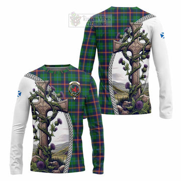 Young Tartan Women's Casual Shirt with Family Crest and St. Andrew's Cross Accented by Thistle Vines