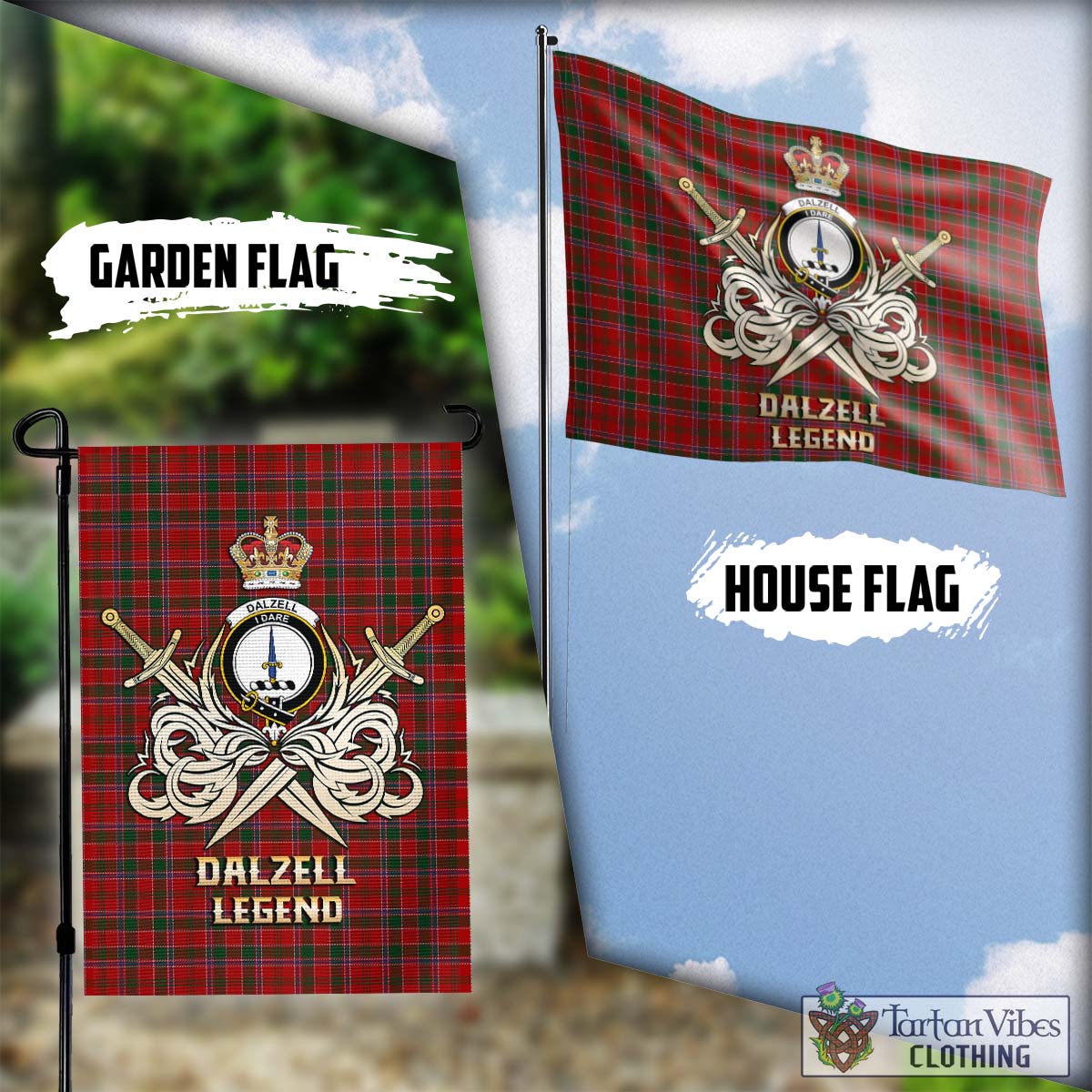 Dalzell (Dalziel) Tartan Garden Flag with Clan Crest and the Golden Sword of Courageous Legacy