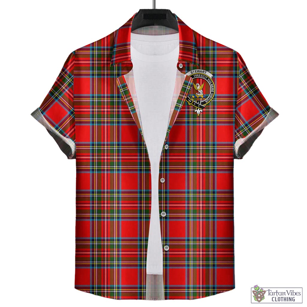 Stewart Royal Tartan Short Sleeve Button Down Shirt with Family Crest