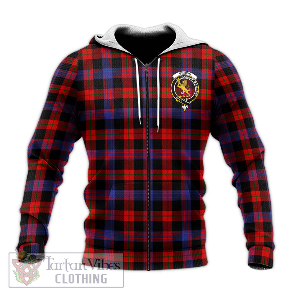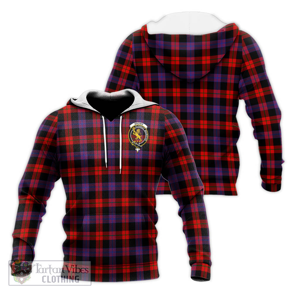 Brown (Broun) Tartan Knitted Hoodie with Family Crest