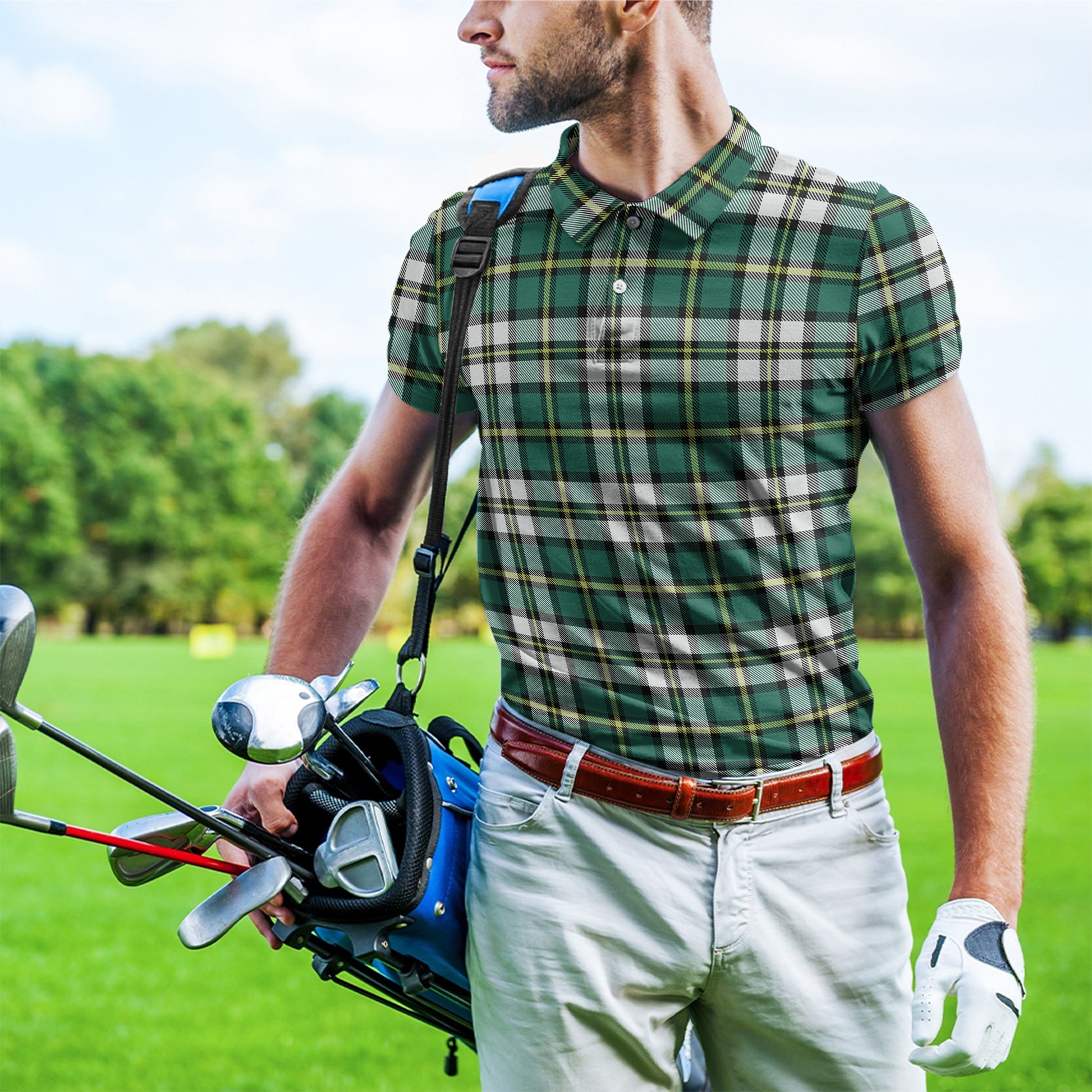 From Tartan Vibes Clothing, our tartan polo shirt combines elegance with Scottish heritage. The custom 3D all-over Scottish pattern grabs attention, perfect for business trips, formal dates, and events. Pair it with trousers or a blazer for a polished look.