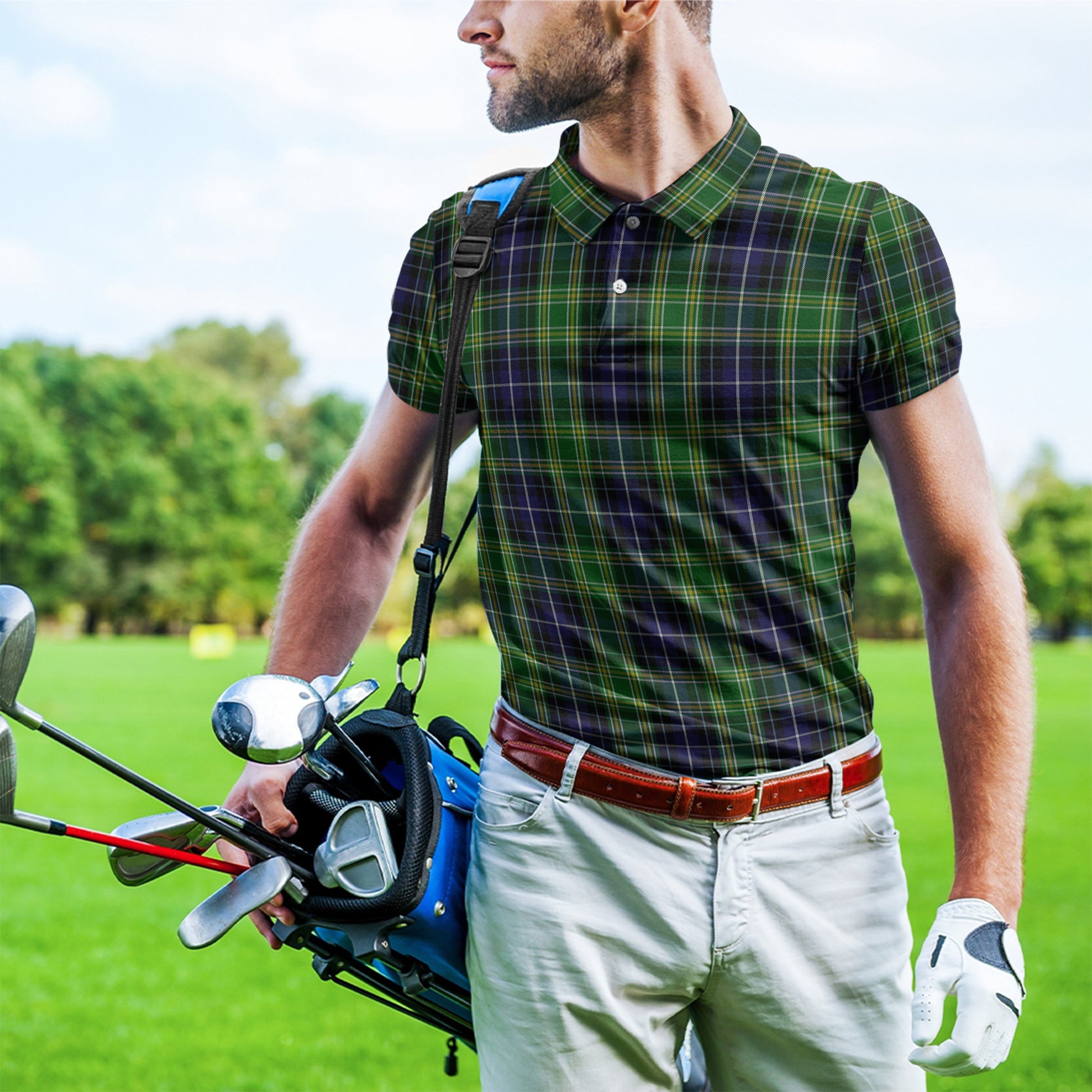 From Tartan Vibes Clothing, our tartan polo shirt combines elegance with Scottish heritage. The custom 3D all-over Scottish pattern grabs attention, perfect for business trips, formal dates, and events. Pair it with trousers or a blazer for a polished look.