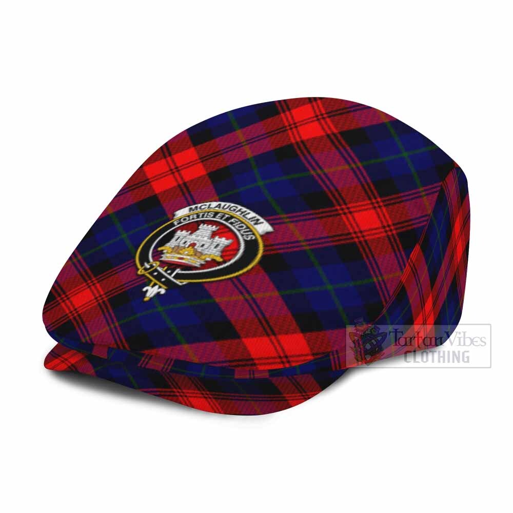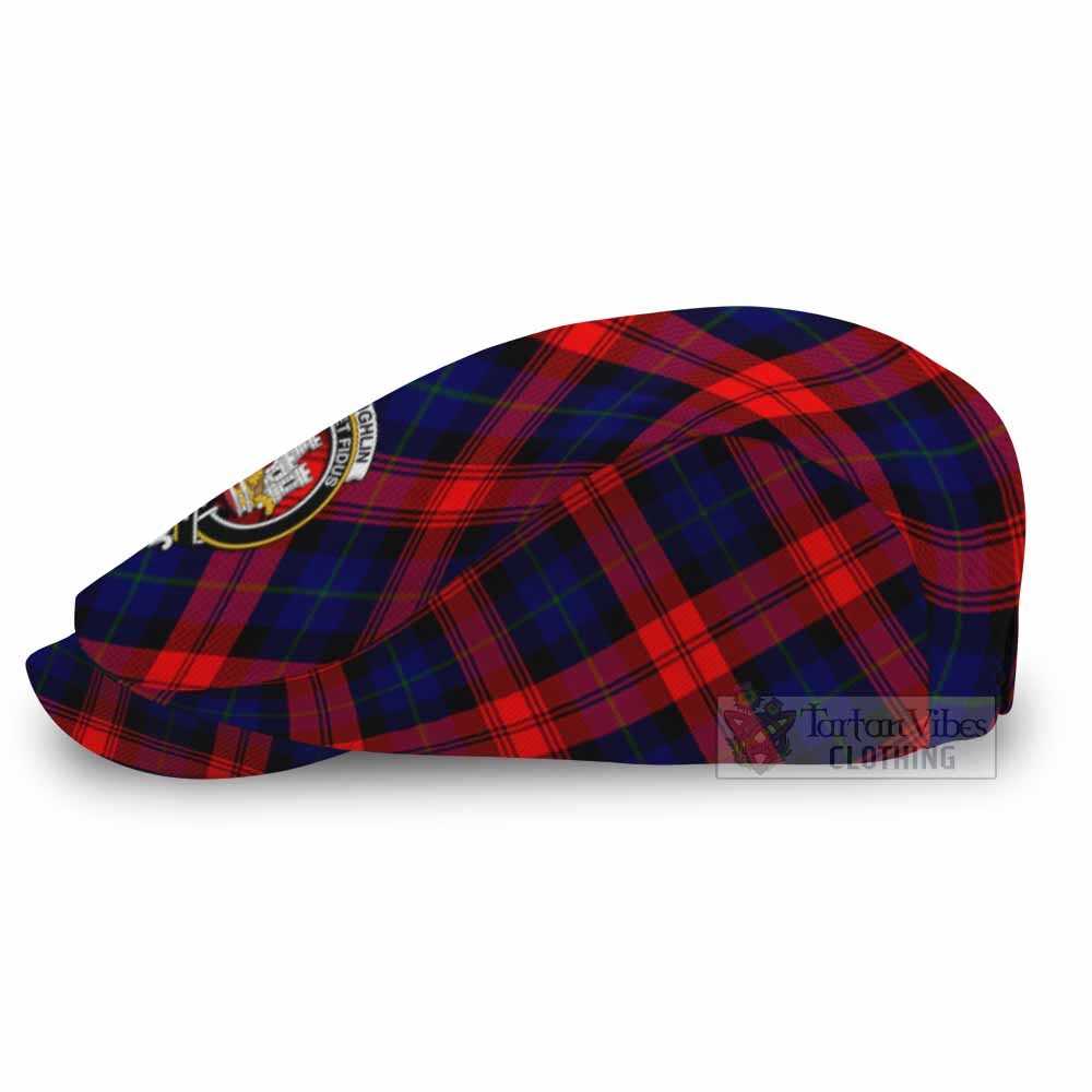 Mclaughlin Tartan Flat Cap, Jeff Cap Cross Style with Family Crest