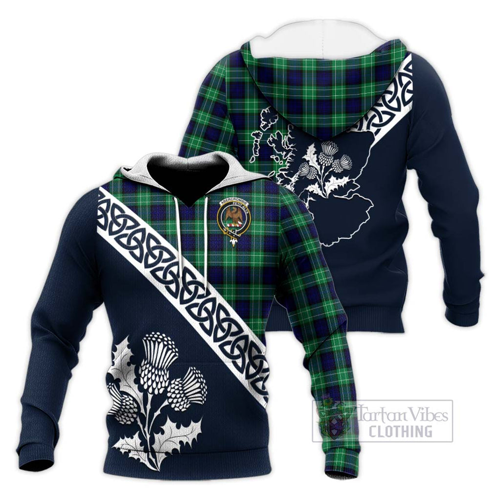 Clark (Clarke) Tartan Knitted Hoodie Featuring Thistle and Scotland Map