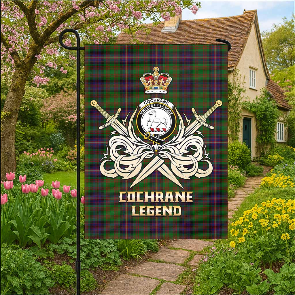 Cochrane Tartan Garden Flag with Clan Crest and the Golden Sword of Courageous Legacy