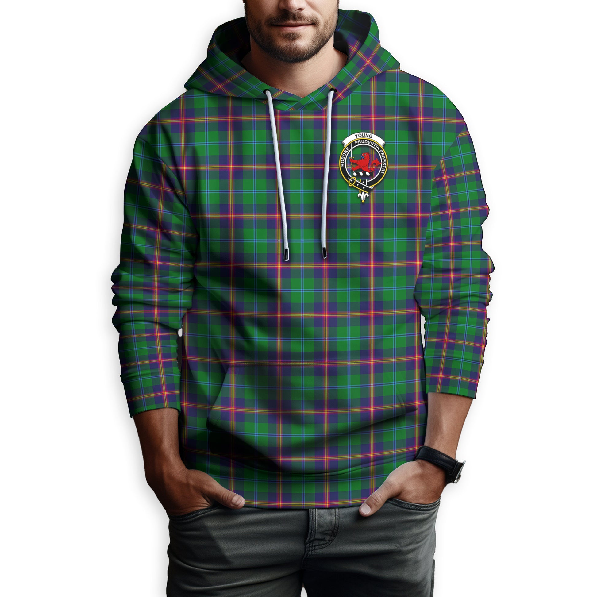 Young Modern Tartan Hoodie with Family Crest