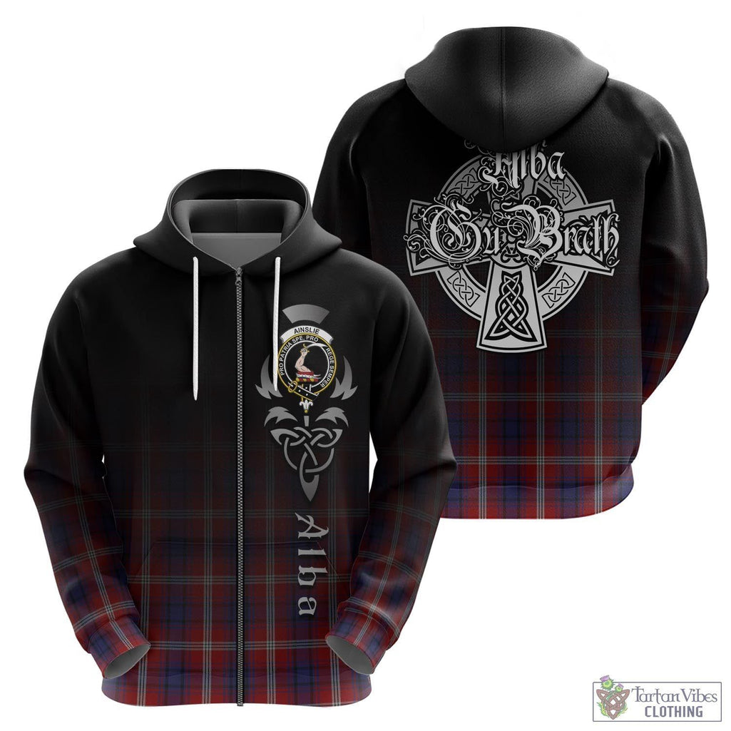 Ainslie Tartan Hoodie Featuring Alba Gu Brath Family Crest Celtic Inspired