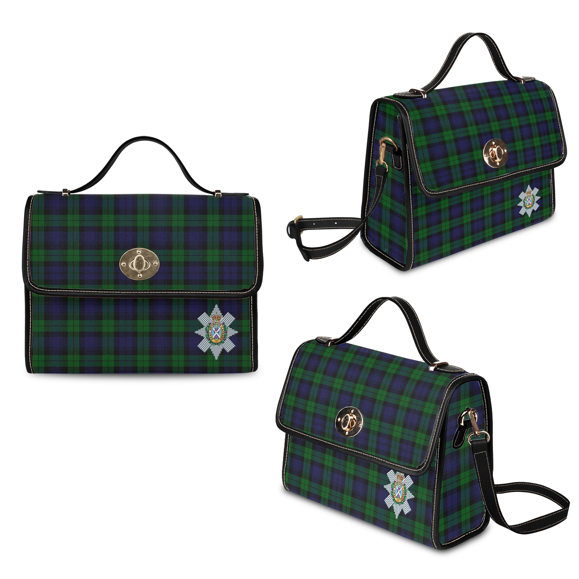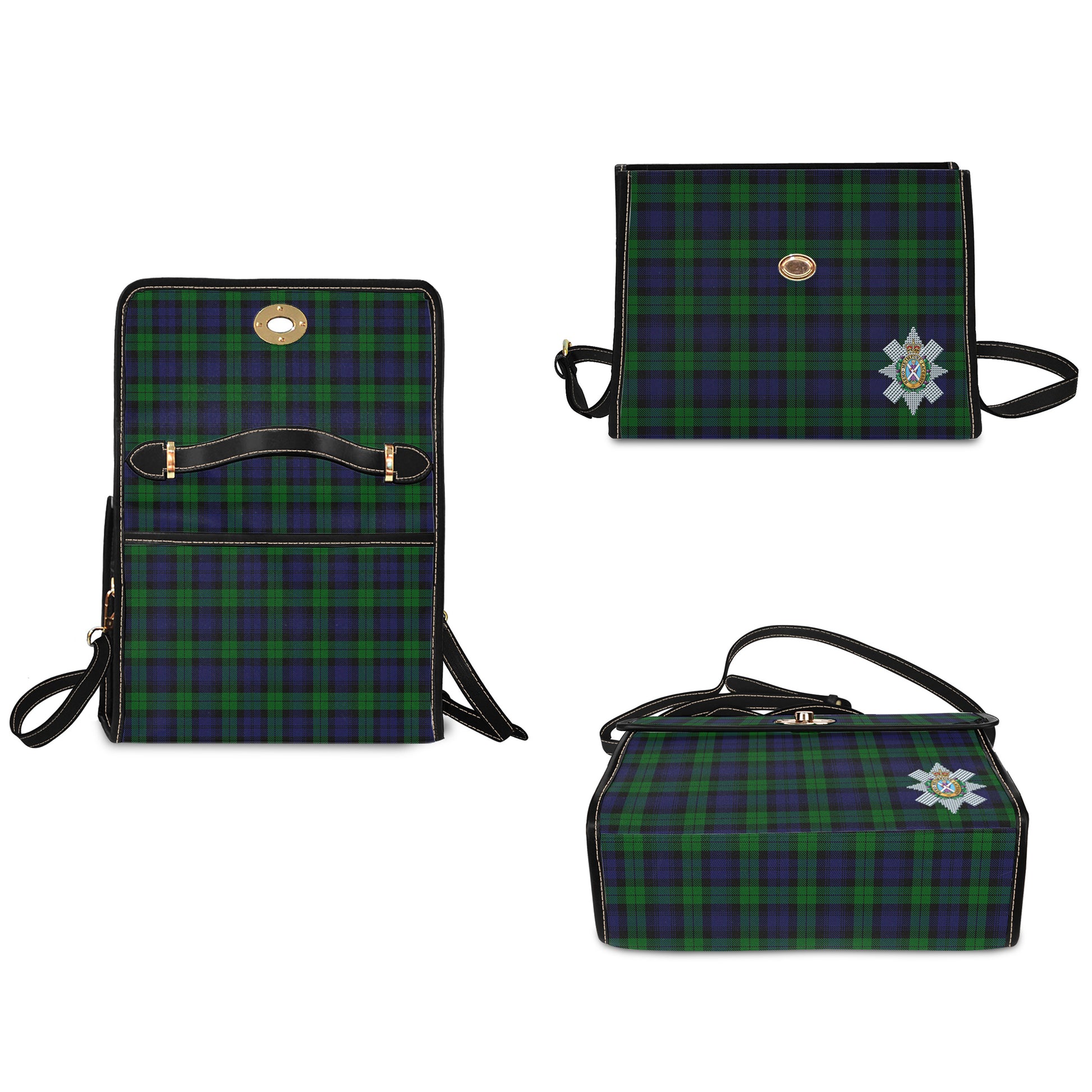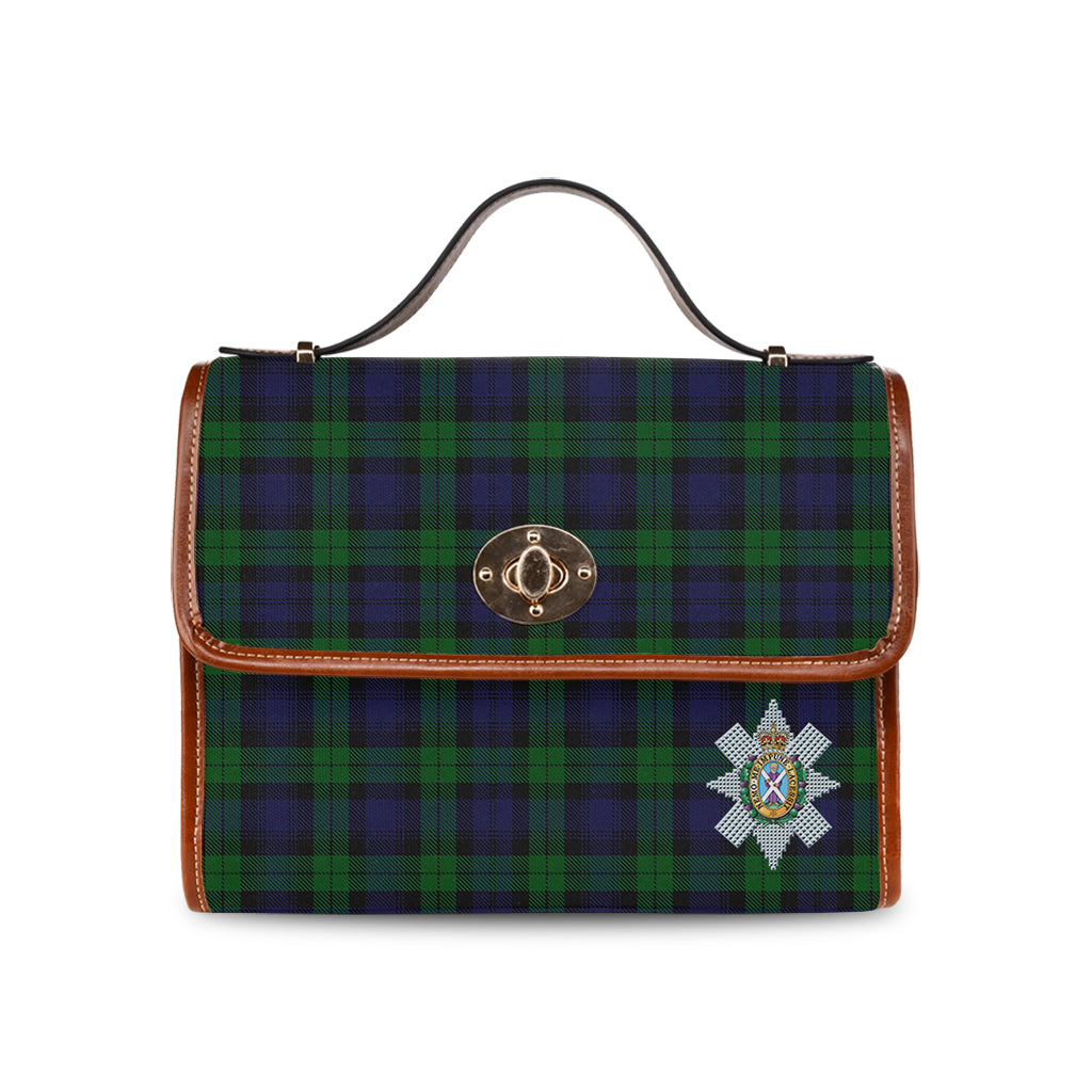 Black Watch Tartan Waterproof Canvas Bag with Family Crest