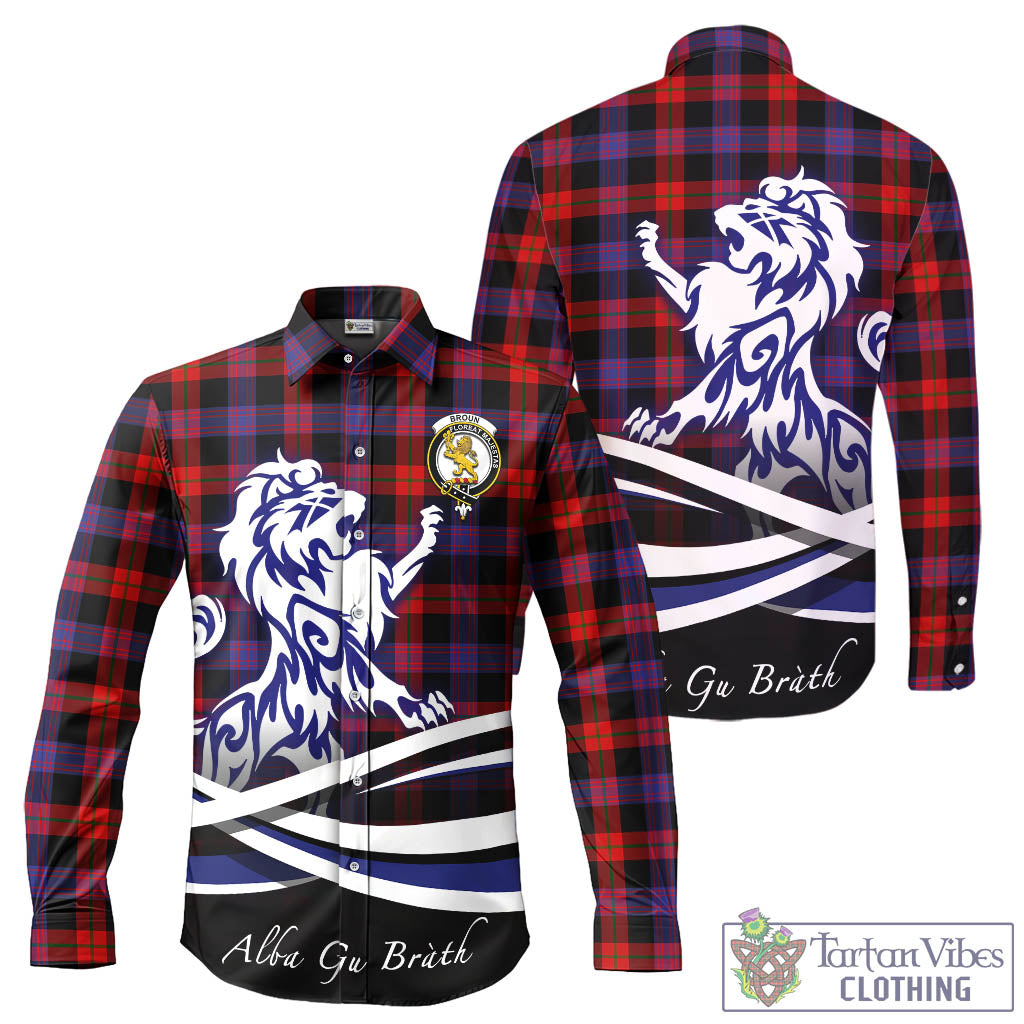 Broun Modern Tartan Long Sleeve Button Up Shirt with Alba Gu Brath Regal Lion Emblem