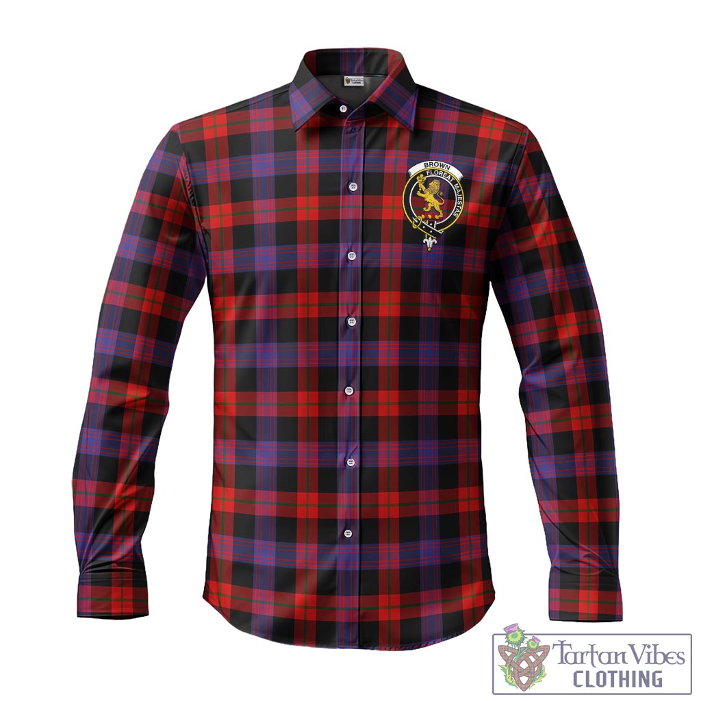 Brown (Broun) Tartan Long Sleeve Button Up Shirt with Family Crest