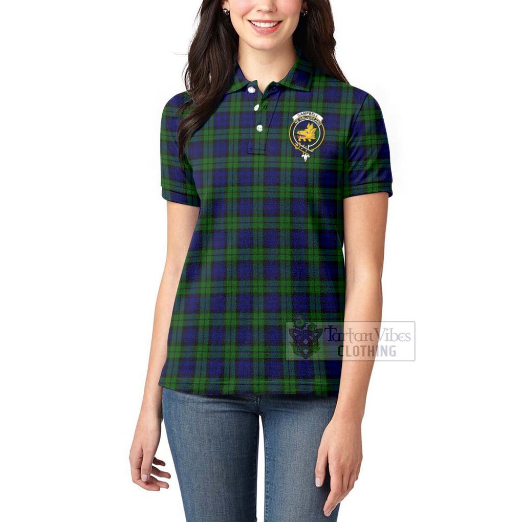 Campbell Tartan Women's Polo Shirt with Family Crest Celtic Skull Style