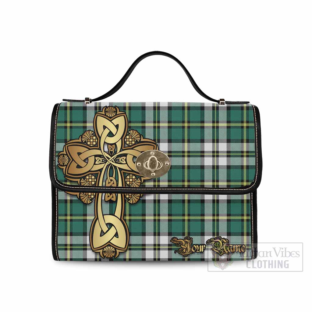 Cape Breton Island Canada Tartan Waterproof Canvas Bag Golden Thistle Celtic Cross Style