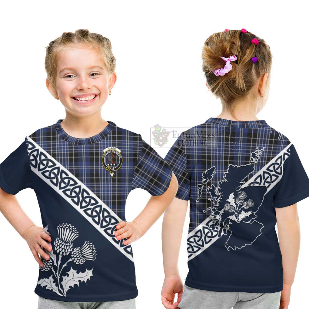 Clark (Clarke) Tartan Kid T-Shirt Featuring Thistle and Scotland Map