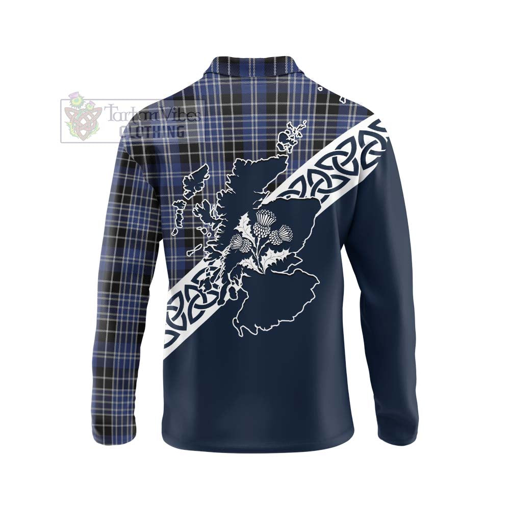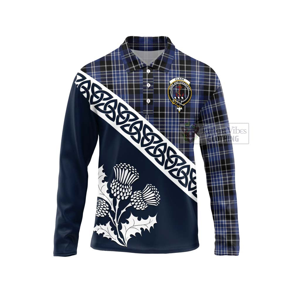 Clark (Clarke) Tartan Long Sleeve Polo Shirt Featuring Thistle and Scotland Map