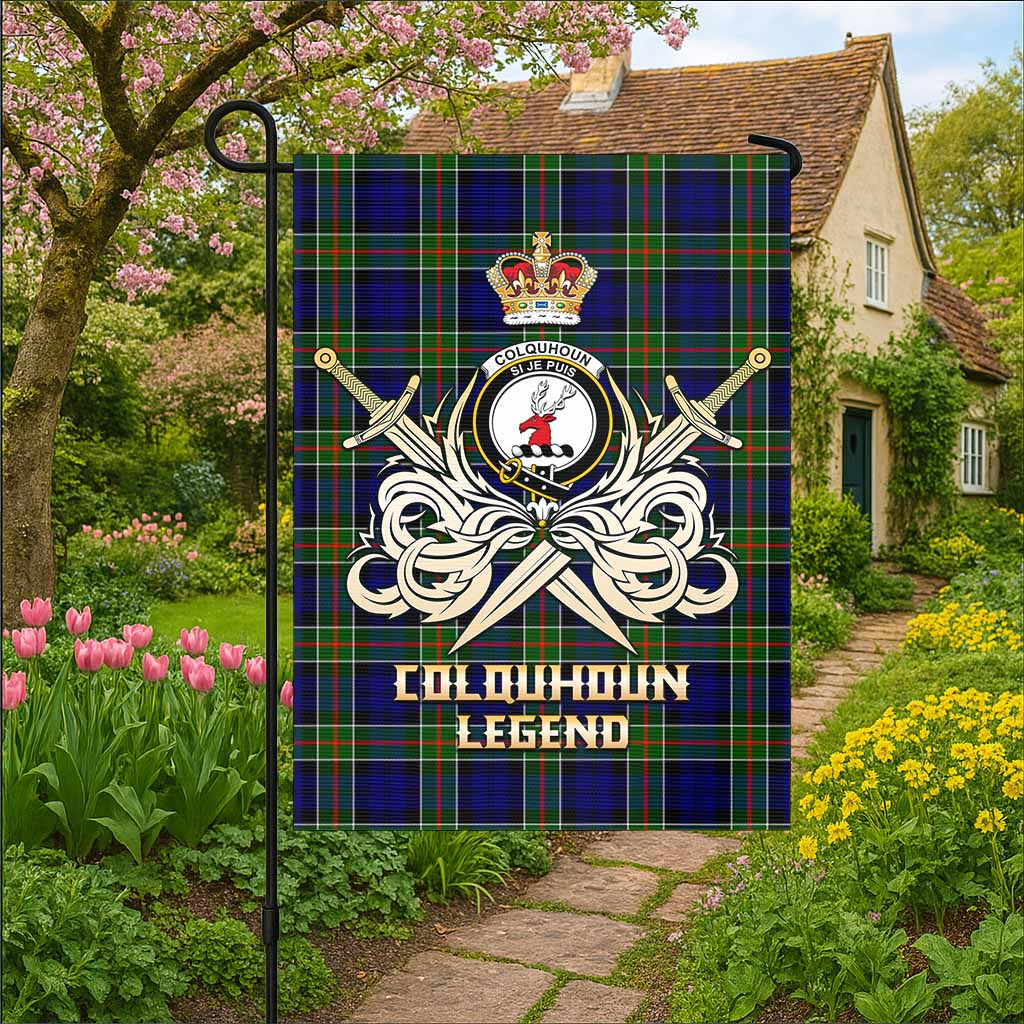 Colquhoun Tartan Garden Flag with Clan Crest and the Golden Sword of Courageous Legacy