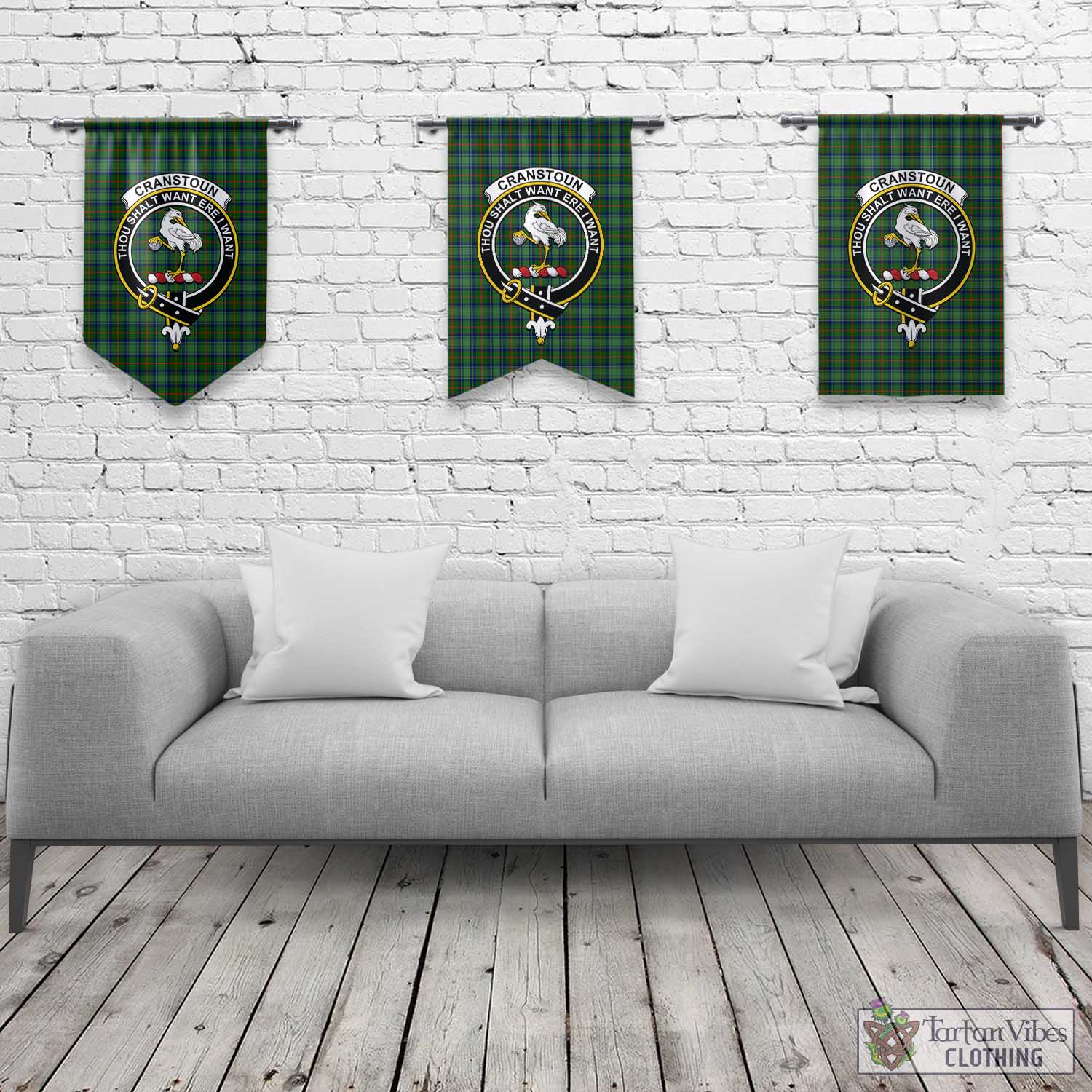 Tartan Vibes Clothing Cranstoun Tartan Gonfalon, Tartan Banner with Family Crest