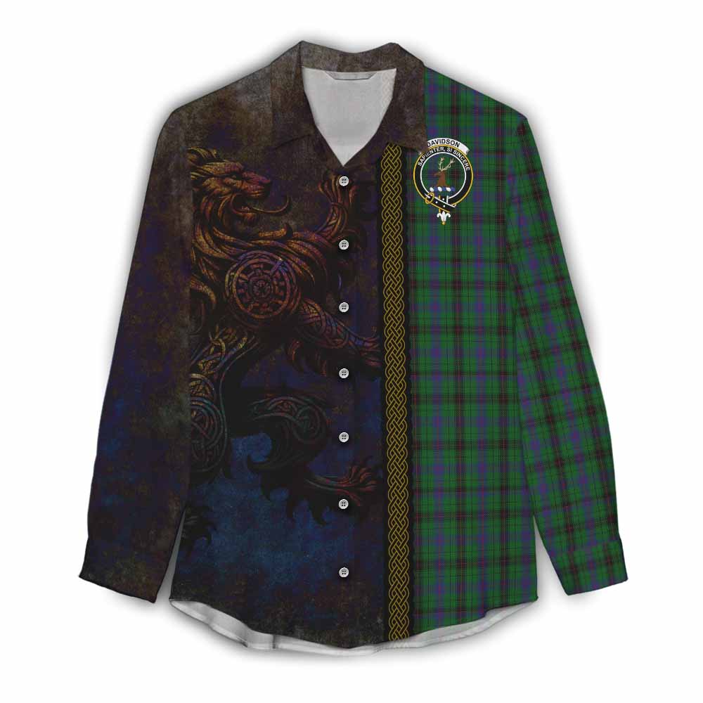 Davidson Tartan Family Crest Women's Casual Shirt Alba Gu Brath Be Brave Lion Ancient Style