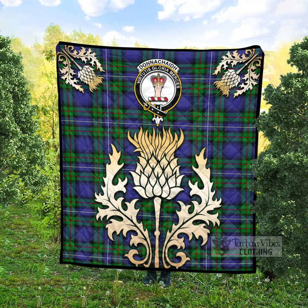 Donnachaidh Tartan Quilt with Family Crest and Golden Thistle Style