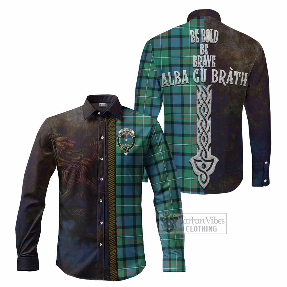 Ferguson (Fergusson) Tartan Family Crest Long Sleeve Button Shirt Alba Gu Brath Be Brave Lion Ancient Style