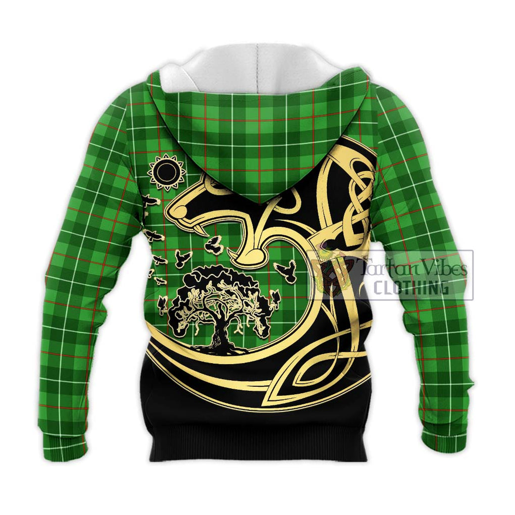 Galloway Tartan Knitted Hoodie with Family Crest Celtic Wolf Style