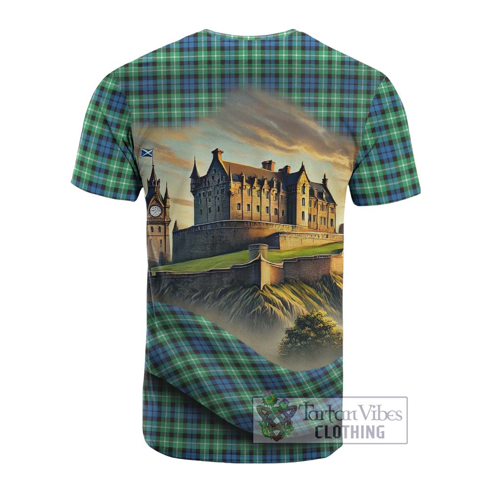 Graham Tartan Family Crest Cotton T-shirt with Scottish Ancient Castle Style
