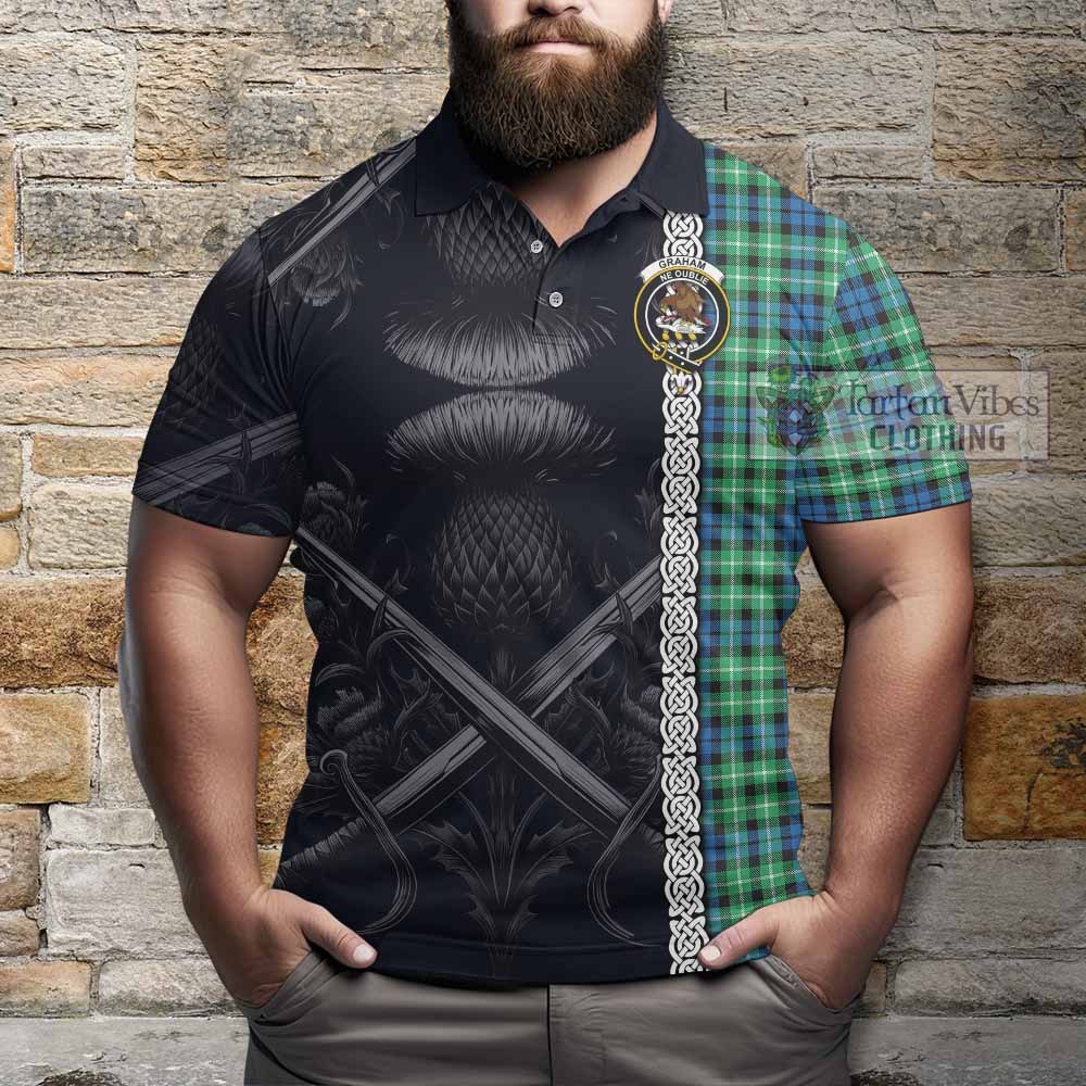Graham Tartan Polo Shirt with Family Crest Cross Sword Thistle Celtic Vibes