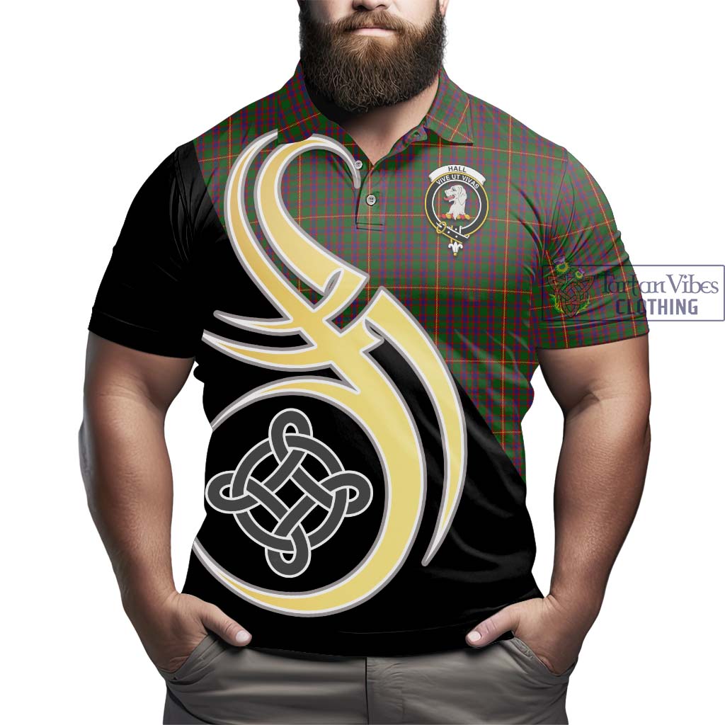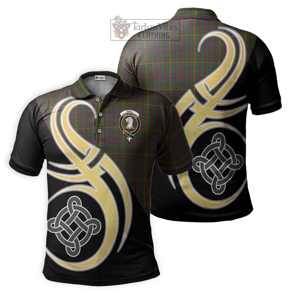 Hall Tartan Polo Shirt with Family Crest and Celtic Symbol Style
