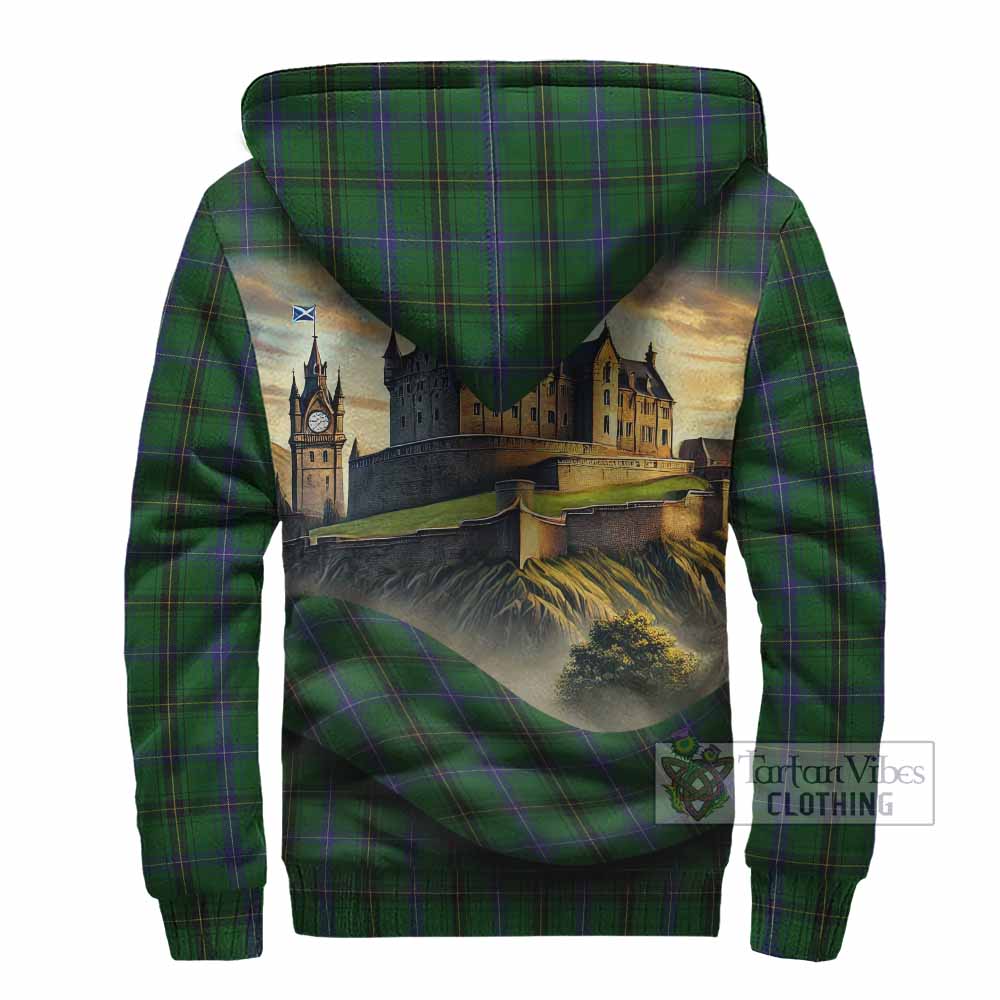Henderson Tartan Family Crest Sherpa Hoodie with Scottish Ancient Castle Style