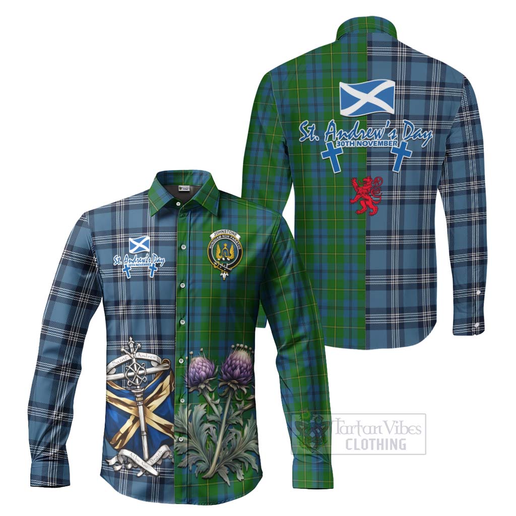 Johnstone (Johnston) Tartan Long Sleeve Button Shirt Happy St. Andrew's Day Half Tartan Style