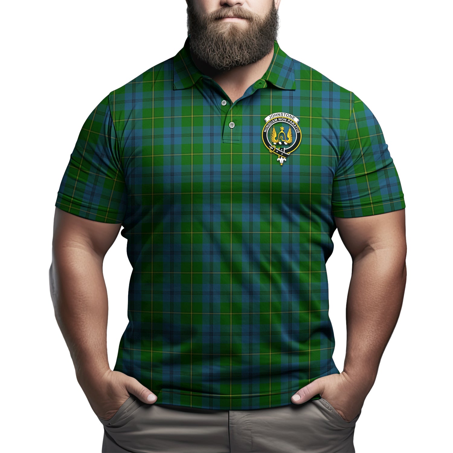 Johnstone Tartan Men's Polo Shirt with Family Crest