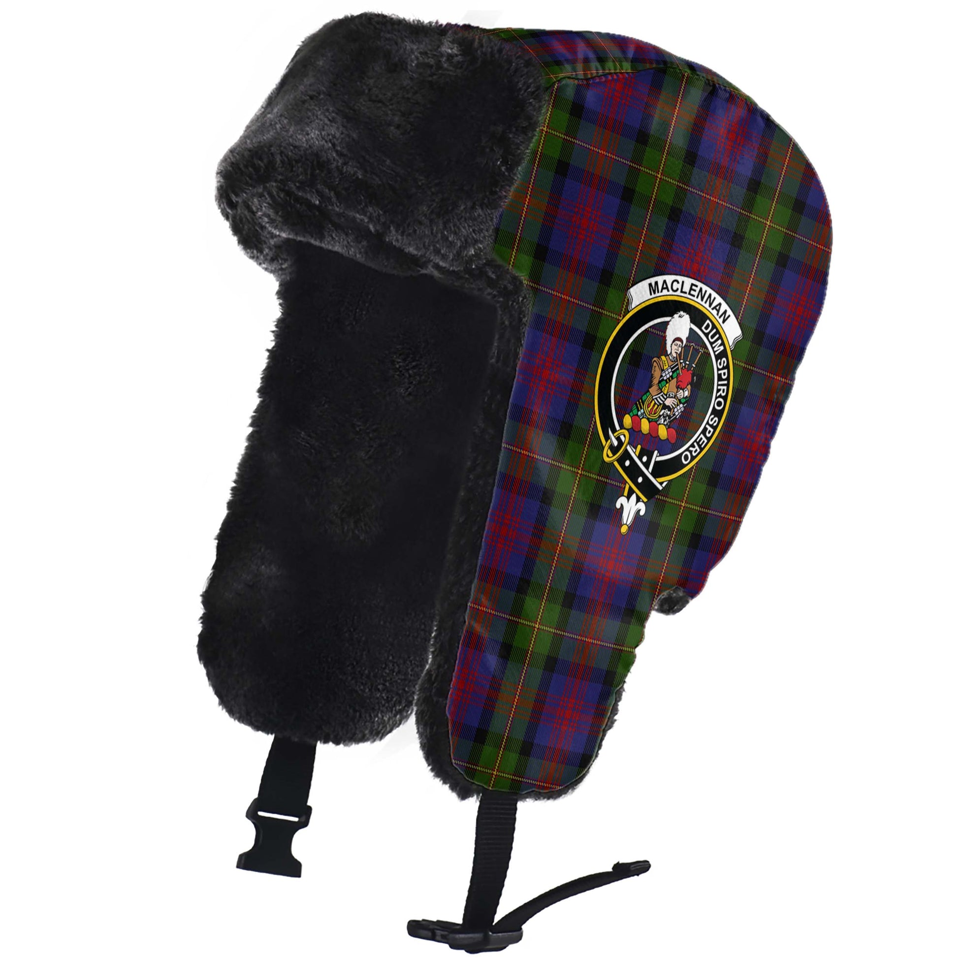 MacLennan (McLennan) Tartan Winter Trapper Hat with Family Crest