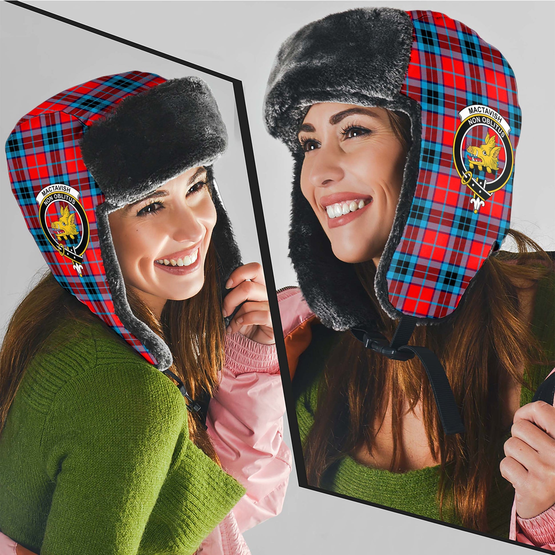 MacTavish Modern Tartan Winter Trapper Hat with Family Crest