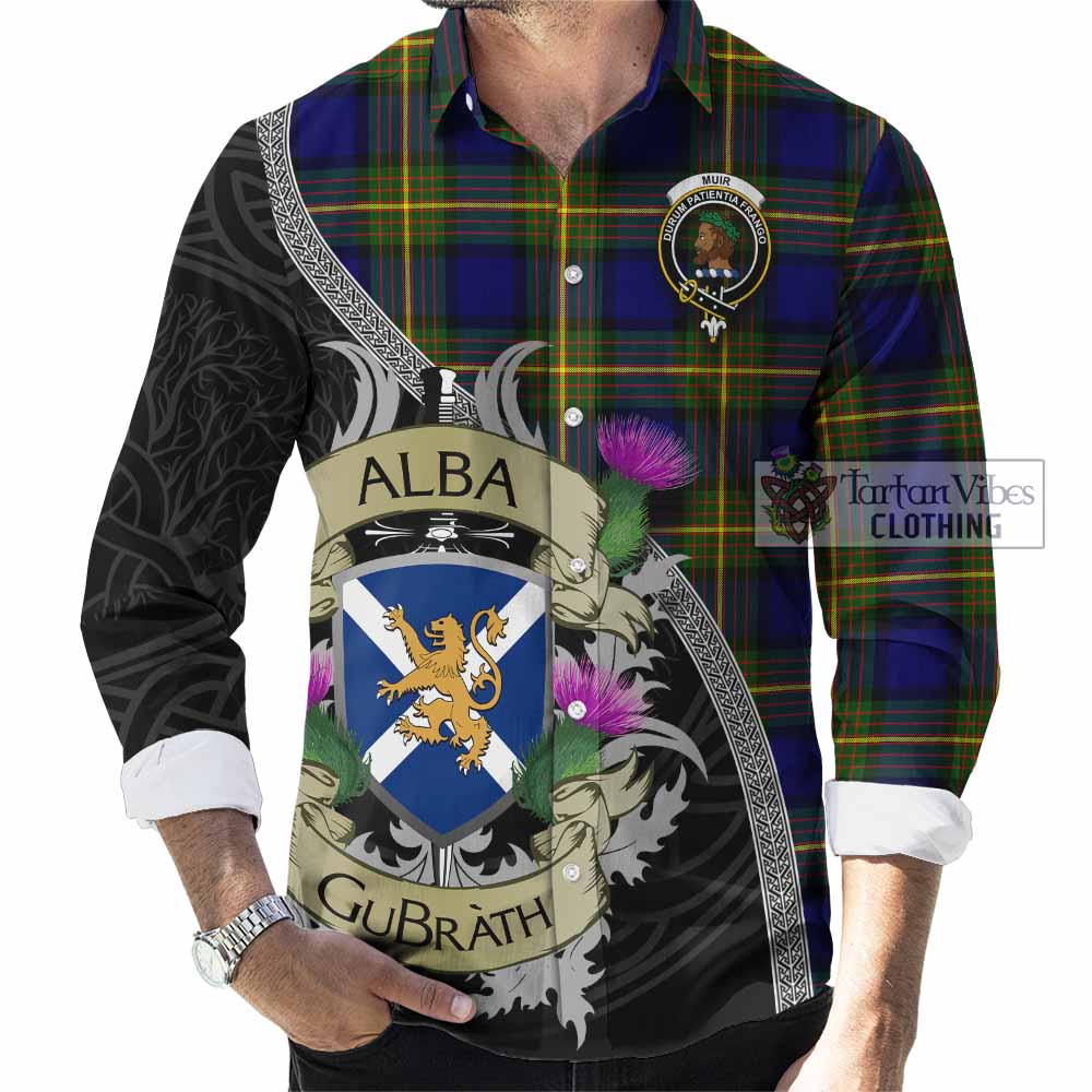 Muir Tartan Family Crest Long Sleeve Button Shirt Lion Rampant Royal Thistle Shield Celtic Inspired