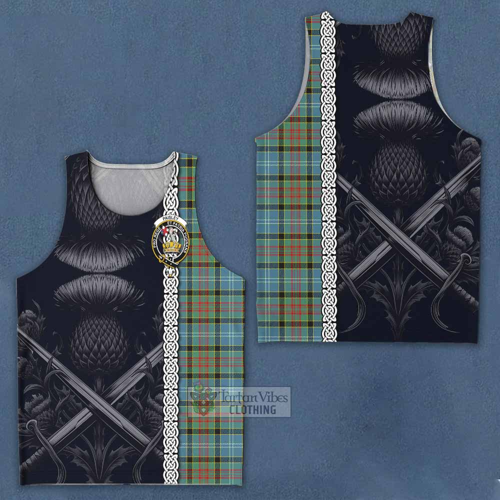 Paisley Tartan Men's Tank Top with Family Crest Cross Sword Thistle Celtic Vibes