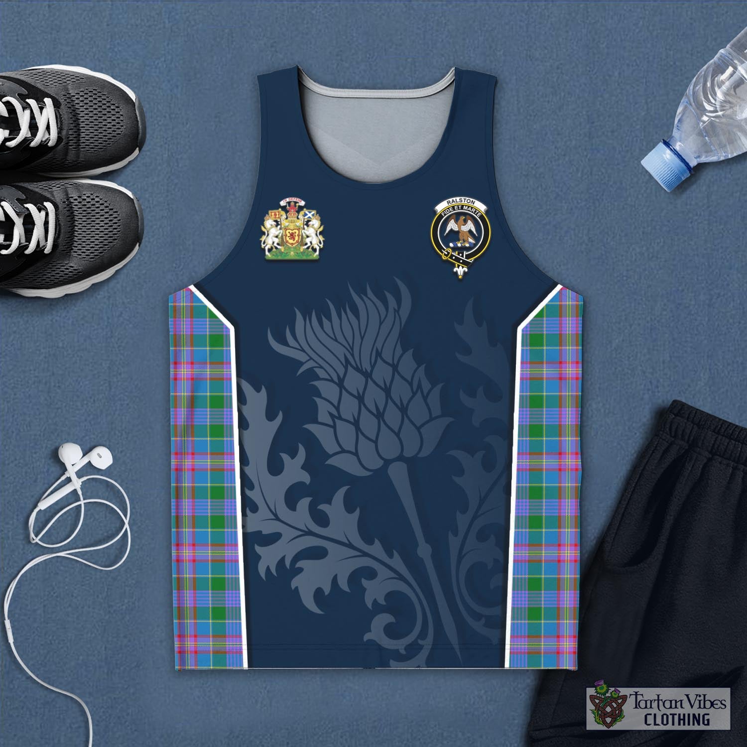 Ralston Tartan Men's Tanks Top with Family Crest and Scottish Thistle Vibes Sport Style
