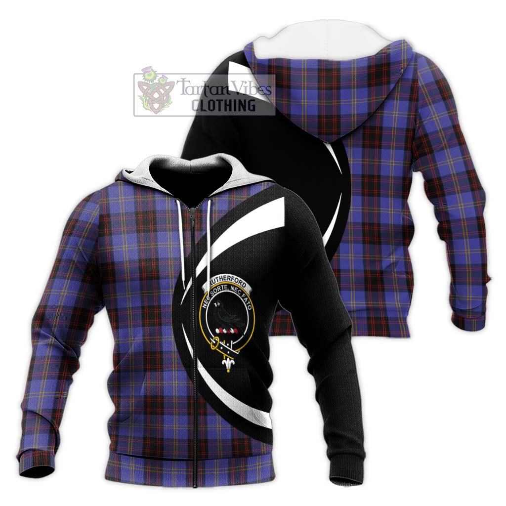 Rutherford Tartan Knitted Hoodie with Family Crest Circle Style