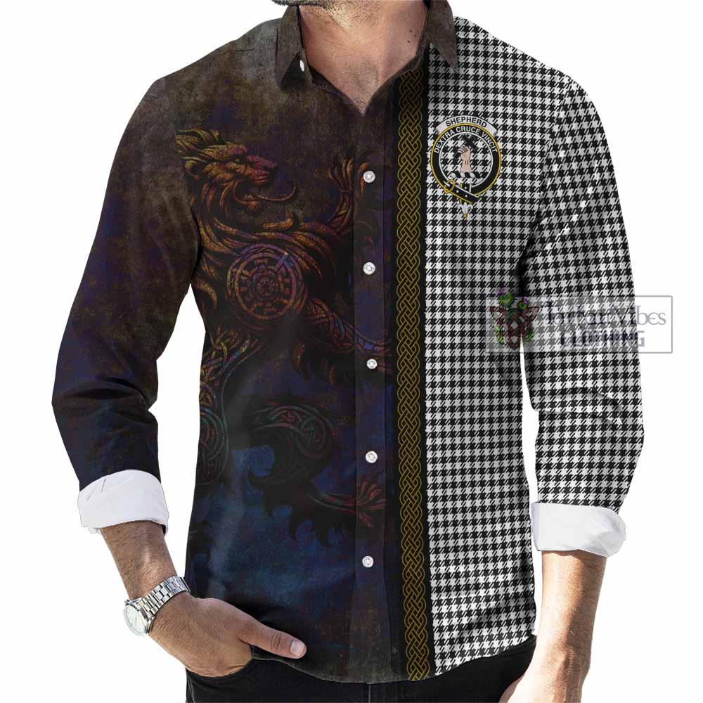 Shepherd Tartan Family Crest Long Sleeve Button Shirt Alba Gu Brath Be Brave Lion Ancient Style