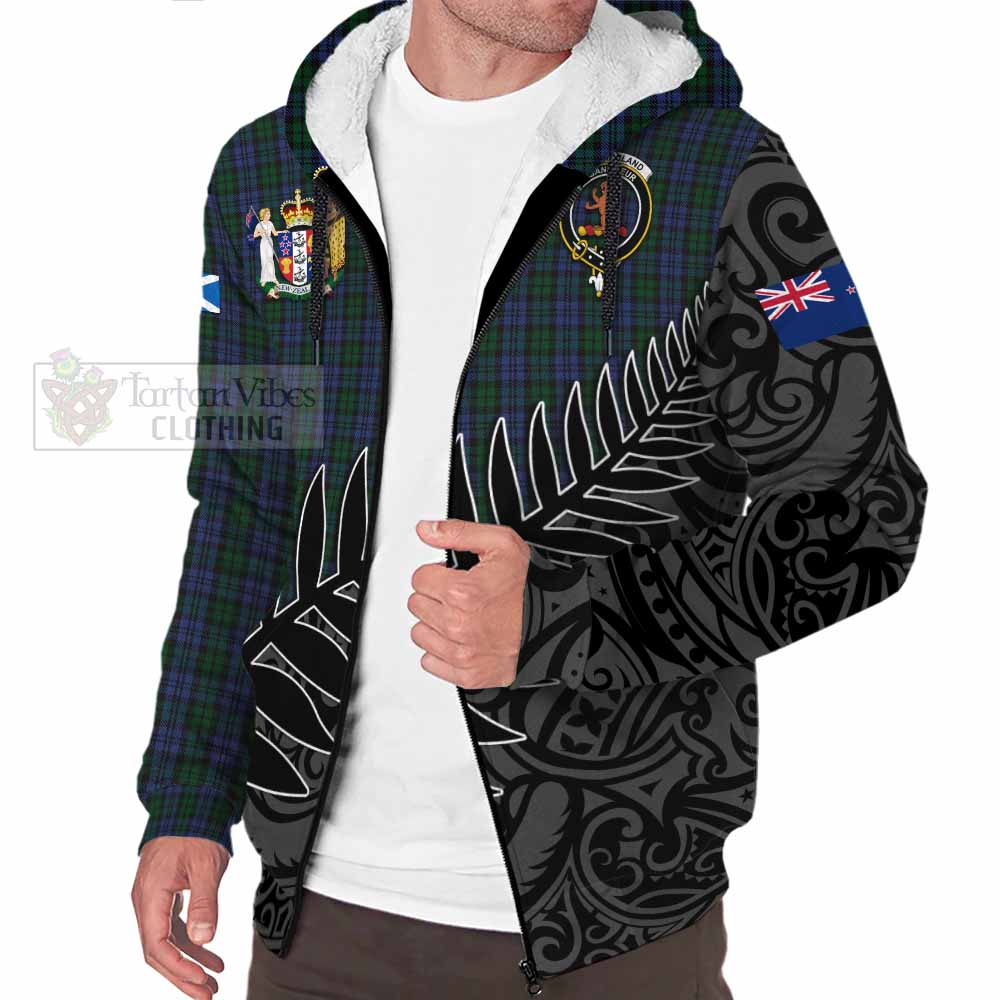 Sutherland Crest Tartan Sherpa Hoodie with New Zealand Silver Fern Half Style