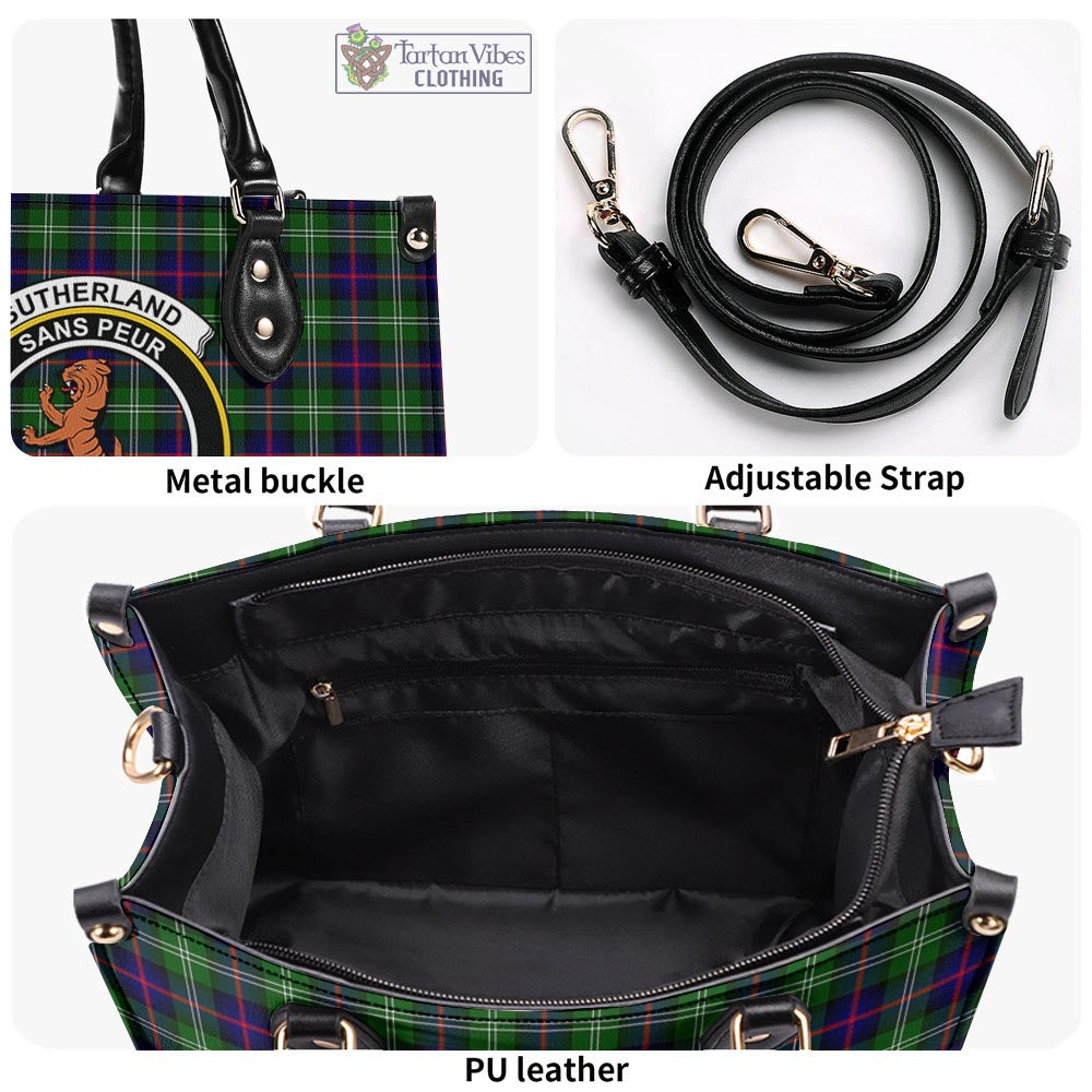 Sutherland Tartan Luxury Leather Handbags with Family Crest